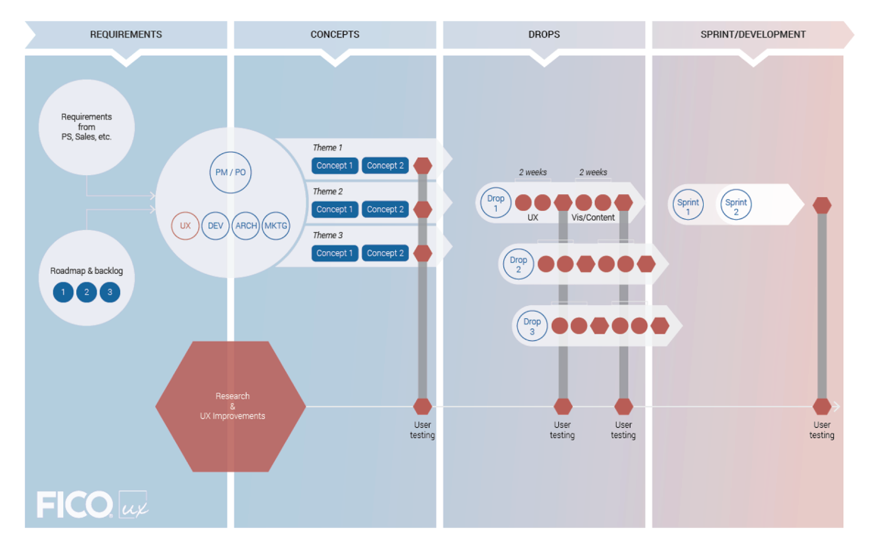 Multiple UX designers, PM and Development teams worked on the first version of FICO Studio. Throughout the process, continual user research was conducted as new features were added to the Studio. In addition to the usability studies, Pendo was selected as the analytic tool to monitor the user of FICO Studio by users when the product came to market.