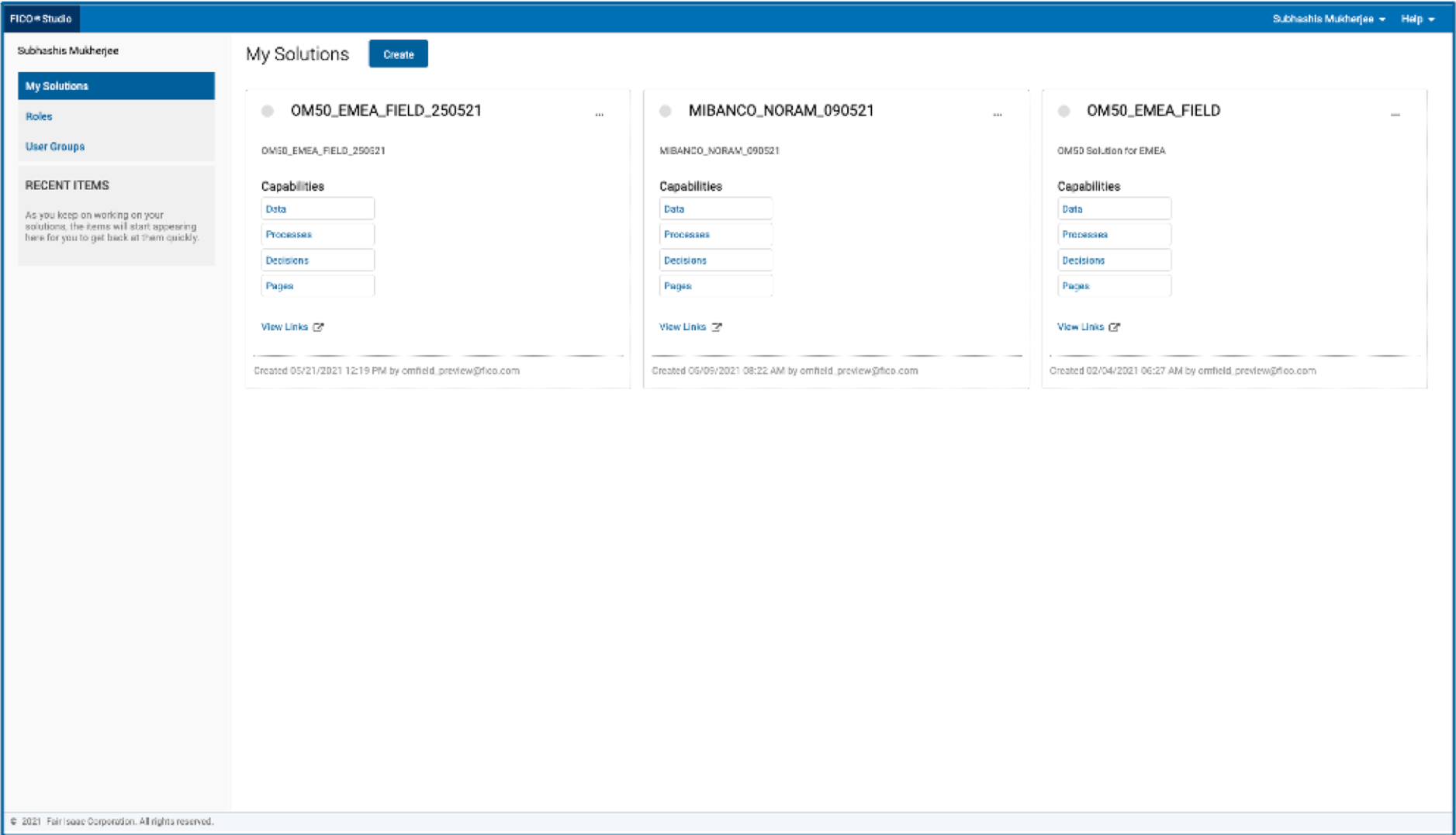 Packaging of the feature capabilities was a crucial component in the design of the new platform. The benefit of the contextual research provided the PM team with the data that most customer implementations followed a similar pattern based on the company vertical - Fintechs had a similar product package and configuration pattern just as Telco had their similarities. This insight from the UX led research developed the template approach to start a new product that allowed a customer to start with a template in FICO Studio - then customize with their own business needs.