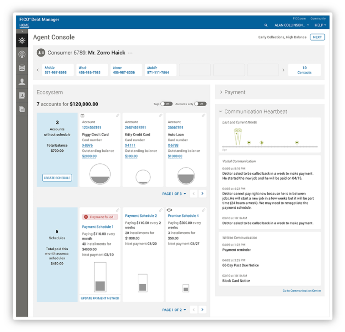 Through multiple iterations of the designs with the target end users from the FICO Customer Council - the UX team designers developed a configurable Dashboard that allowed the users to hide components and add components to their personalized view. In addition, the ability to save the Dashboard as a PDF to use as a report was added to the Falcon X Dashboard.